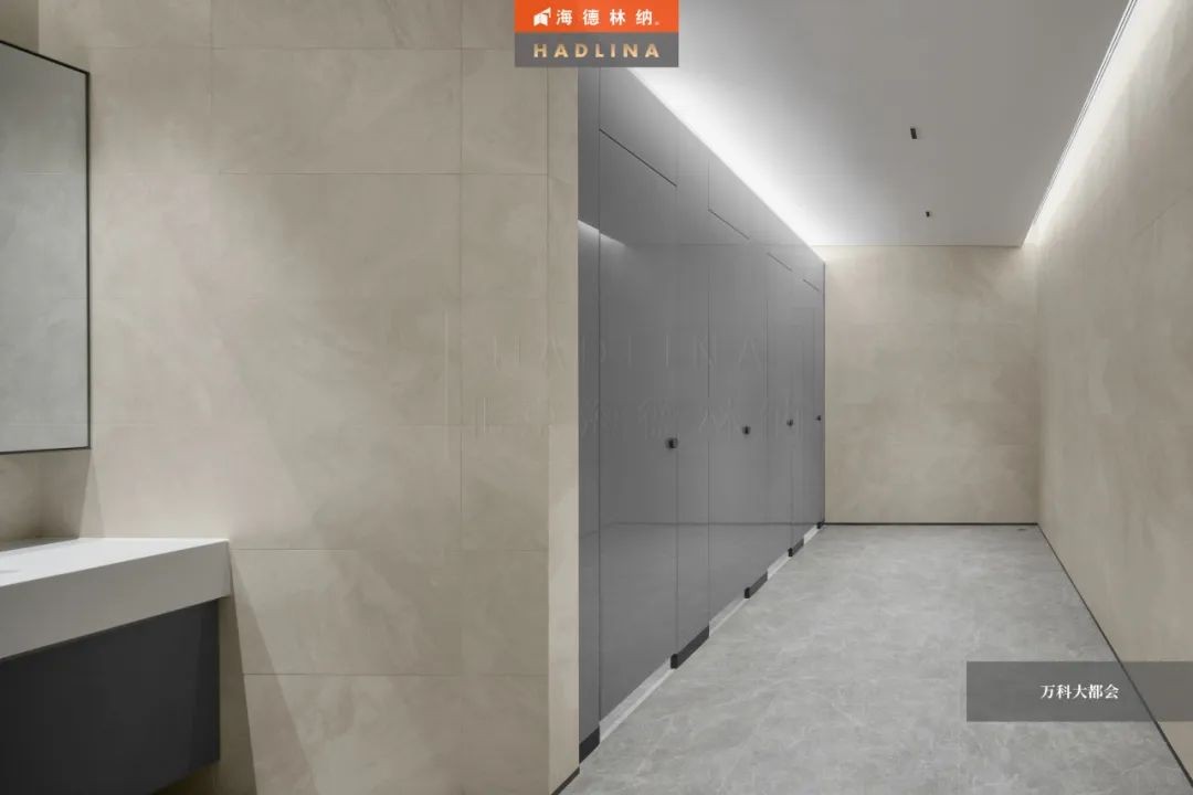 科技灰色的外觀完美融入了濟南萬科大都會的現(xiàn)代氛圍。這種色彩不僅突顯出空間的現(xiàn)代感,還為衛(wèi)生區(qū)域注入了一股高科技的氣息。同時,鋼化玻璃裝飾提升了整個區(qū)域的高雅感和時尚度,創(chuàng)造出一個令人舒適愉悅的環(huán)境。